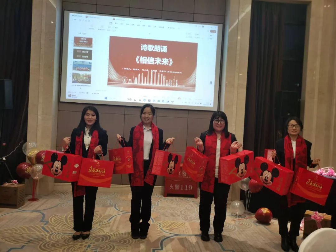年會(huì)現(xiàn)場(chǎng),員工們自編自導(dǎo)自演的節(jié)目精彩紛呈,形式多樣,涵蓋了朗誦、歌曲、舞蹈、二胡等多種藝術(shù)形式?,F(xiàn)場(chǎng)氣氛熱鬧非凡。貼心的人事行政部為每一位表演者送上精美禮品。